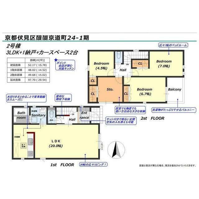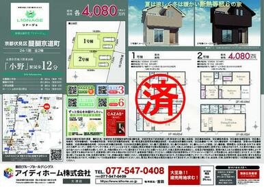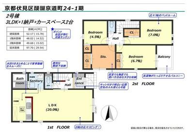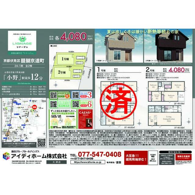 号棟番号:2号棟 総戸数:2戸 2号棟 京都伏見区醍醐京道町 第1期 【法令】宅地造成工事規制区域【その他制限事項】法第22条区域 最高高さ制限1 0m 最低敷地面積100平米 10m高度地区 山ろく型建造物修景地区(伏見・山科地区) ※歩道を含めて幅員約16m ※詳細については担当営業店へお問合せください。また、現況と異なる場合は現況を優先させて頂きます。 ※ゴミ置き場に関しては、自治体、行政、住民等の管理につき詳細は直接ご確認ください。